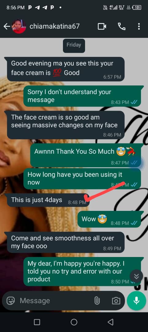 Good evening ma you see this your face cream is 💯 Good The face cream is so good am seeing massive changes on my face This is just 4days Come and see smoothness all over my face oooh You guys know what you are doing all thanks to CKE Face Cream ❤️