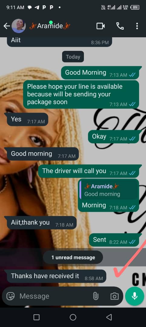 Good Morning Ma, I've received my package 📦 I really love your products ooh, I'm not regretting it ooh 🤩 My No 1 Legit Vendor wet dey Vend 📢💯🥰